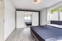 Begane grond: deze ruime woning heeft een ruime hal met de trap naar de eerste verdieping, een bergkast onder de trap. Op de begane grond zijn twee slaapkamers en de badkamer gesitueerd. De badkamer is ingedeeld met een inloopdouche, toilet en een wastafelmeubel. Zowel de wanden als de vloer zijn geheel betegeld in een mooie kleurencombinatie. Tevens treft u hier de wasmachine aansluiting.