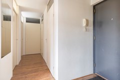 Afgesloten gezamenlijke centraal gesloten entree met brievenbus en bellentableau met intercom, lift/trappenhuis naar tweede etage. De ruime hal op de 2e woonlaag biedt toegang aan slechts 3 appartementen.