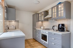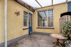 Entree woning, gang, meterkast, trap naar 1e etage, woonkamer, eetkamer, nette keuken met keukenblok in wandopstelling voorzien van koelkast, vriezer, 4-pit gaskookplaat, afzuigkap, oven en vaatwasser, badruimte met toilet en douche, gezellige binnenplaats met overkapping,