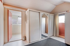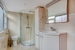 1e etage: Overloop, zijkamer met veel lichtinval, ruime voorslaapkamer, 2e badkamer met toilet, douchecabine en wastafelmeubel, ruime achterslaapkamer met toegang tot leuk dakterras.