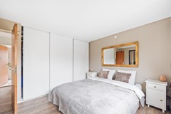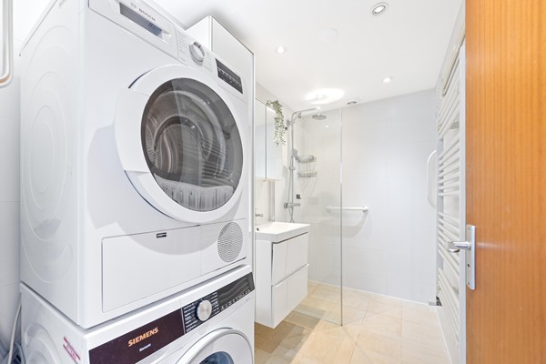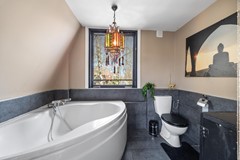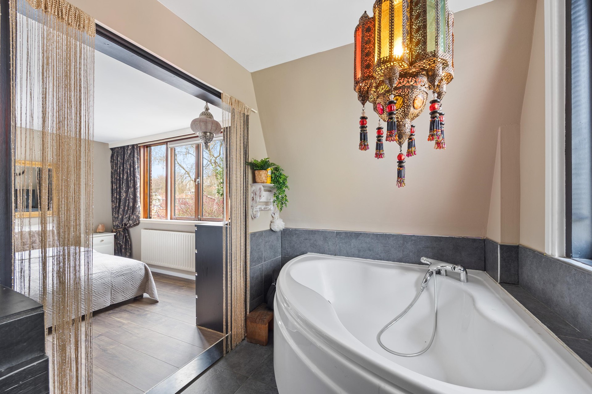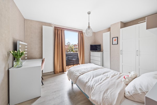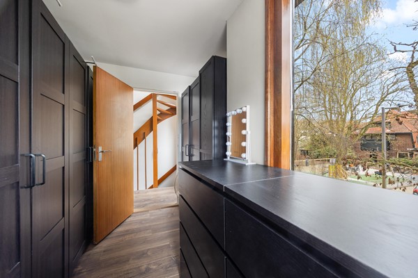 Ruime overloop met vaste trapopgang naar de 2e verdieping. Hoofdslaapkamer aan de achterzijde met vaste kastenwand en aansluitend de badkamer en suite voorzien van ruim hoekbad, toilet en wastafelmeubel. Aan de voorzijde de 2e slaapkamer met openslaande deuren naar het balkon met schitterend uitzicht over de singel. Daarnaast de 3elaapkamer welke is omgetoverd tot walk-in closet met uitzicht over beide singels. Tenslotte op deze verdieping de volledig betegelde-, 2e badkamer met inloopdouche, wastafelmeubel en de aansluiting voor de wasmachine,