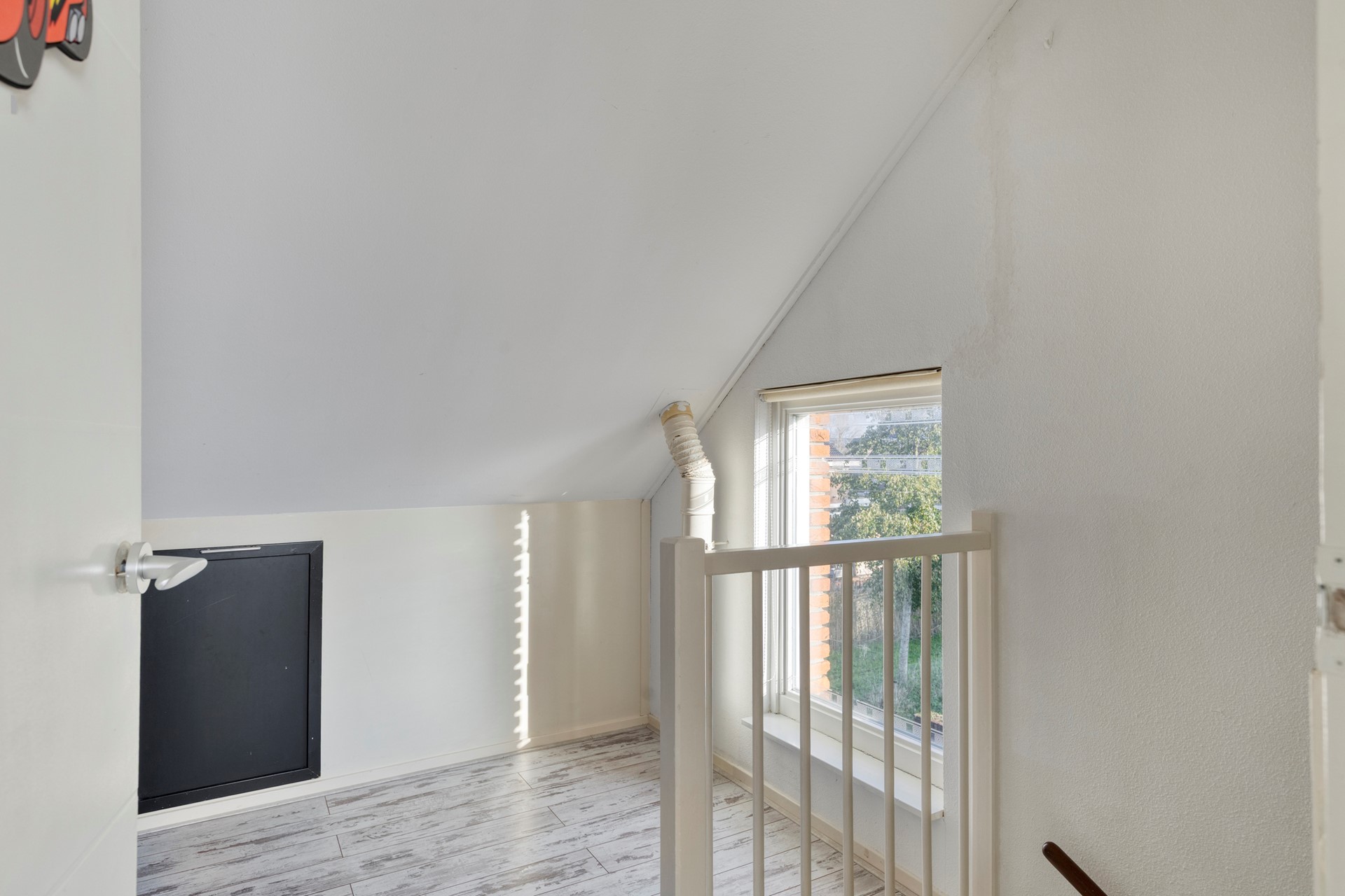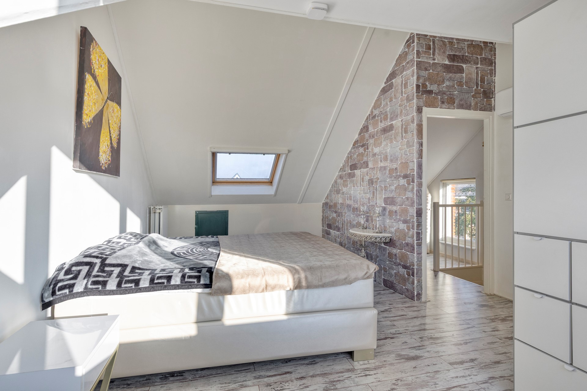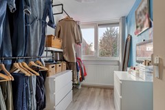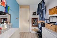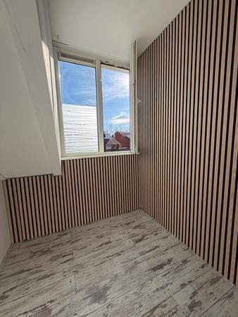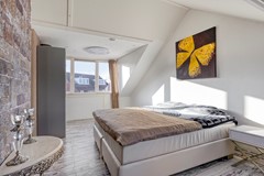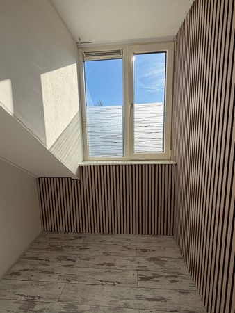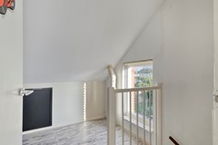 Via vaste trap te bereiken ruime voorzolder met wasmachineaansluiting, mechanische ventilatie en toegang tot de slaapkamer. De zeer ruime slaapkamer is voorzien van een kunststof dakkapel. Op relatief eenvoudige wijze is er van de verdieping 2 kamers te maken.